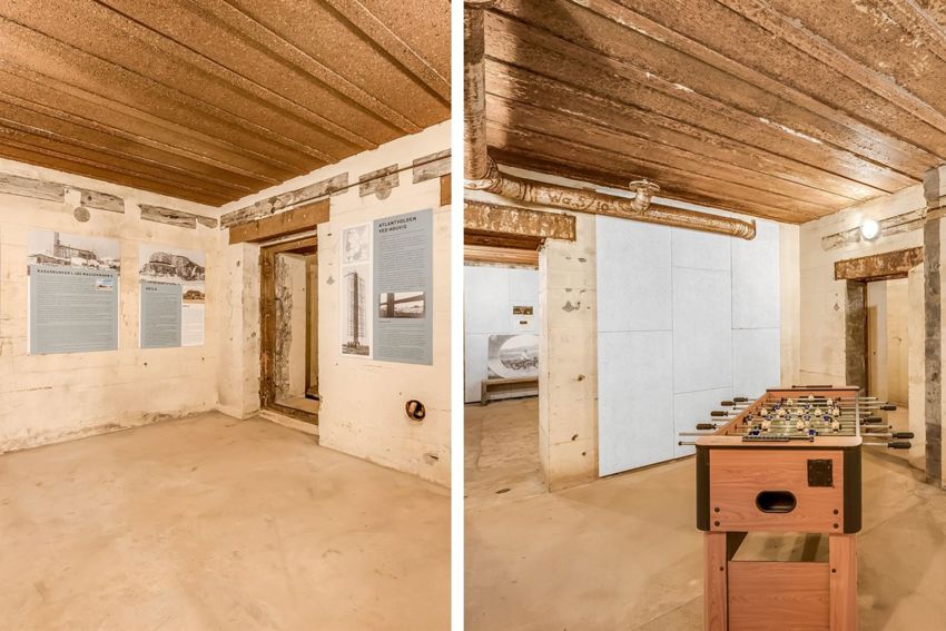 Det var de forrige ejere, der brugte masser af tid og energi på at få udgravet resterne af det, der engang var en tysk radarstation – i dag fungerer de omkring 80 underjordiske kvadratmeter som en noget anderledes aktivitetskælder med billard, bordtennis, dart og bordfodbold.