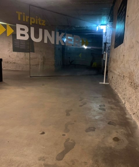 Den slags gør man ikke uden at sætte spor, og derfor er der et sted i Tirpitz-museet, hvor du kan se aftrykkene af hans bare fødder. Fodsporene er sat i den gang, der forbinder den nye del af museet med selve den gamle bunker.